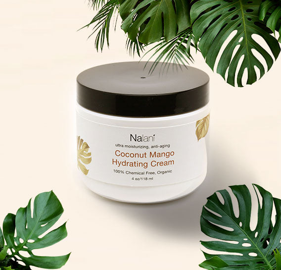 Our lush Coconut Mango Hydrating Cream is an imported formula manufactured in the U.S.A. It contains herbs and other organic ingredients that we have carefully chosen to repair your injured skin cells and delay the aging process. Here's a list of what some of these incredible ingredients do for your skin: mango butter prevents dry skin, dermatitis, and radiation damage; babassu oil destroys free radicals; avocado oil efficaciously cures acne and blackheads; and jojoba oil, combined with organic raw honey, combats creases and wrinkles.