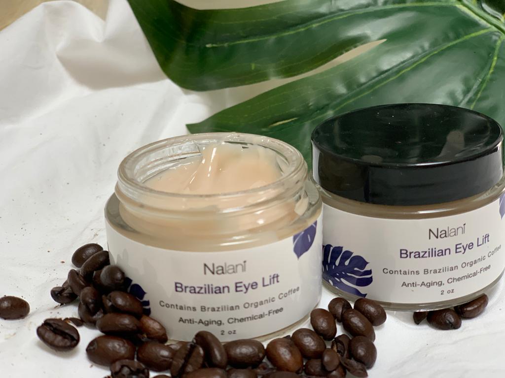 Nalani Brazilian Coffee Eye Lift is a lush anti-aging cream that reduces fine lines, wrinkles, crow's feet, eye bags, sagging, and puffiness around the eyes. suitable for both men and women, our all natural day and night gel absorbs beautifully into the skin, never leaving behind a greasy residue, just more youthful eyes. made with Brazilian coffee, this cream will tighten skin around your eyes giving you a surgery like lift!